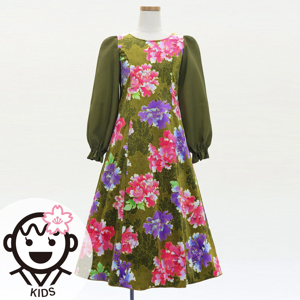 OVERVIEW: -Kids Long Sleeve Dress / Japan Fabric -color:Khaki