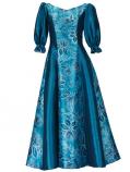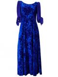Hula Floral Embosed Velvet Dress with Ciffon sleeves / Blue / G2337bl